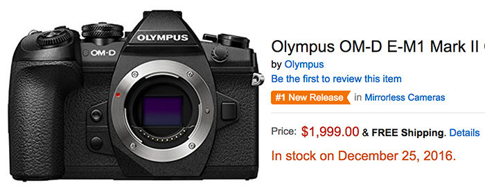 Olympus note on the E-M1II: “Due to overwhelming demand new orders may not ship until January.”