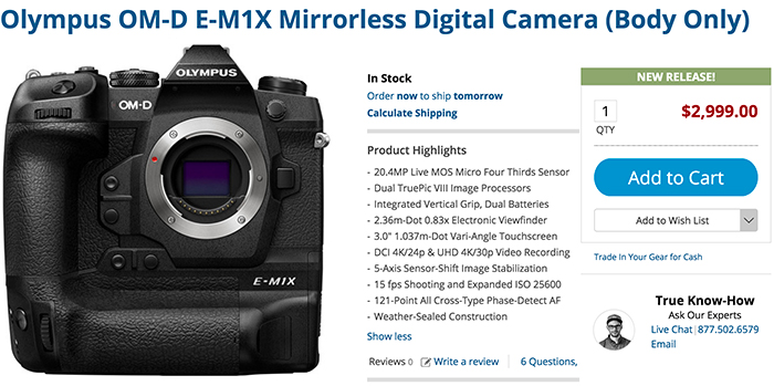 Olympus E-M1X in USA at Amazon, GetOlympus, Adorama and BHphoto.