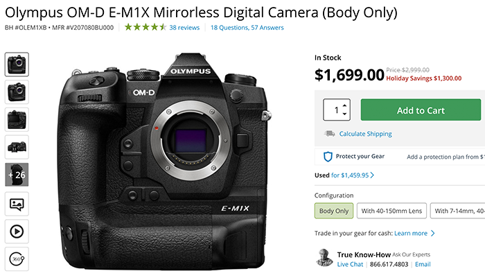 $1300 off on the E-M1X sold at Amazon, GetOlympus, Adorama, BHphoto.