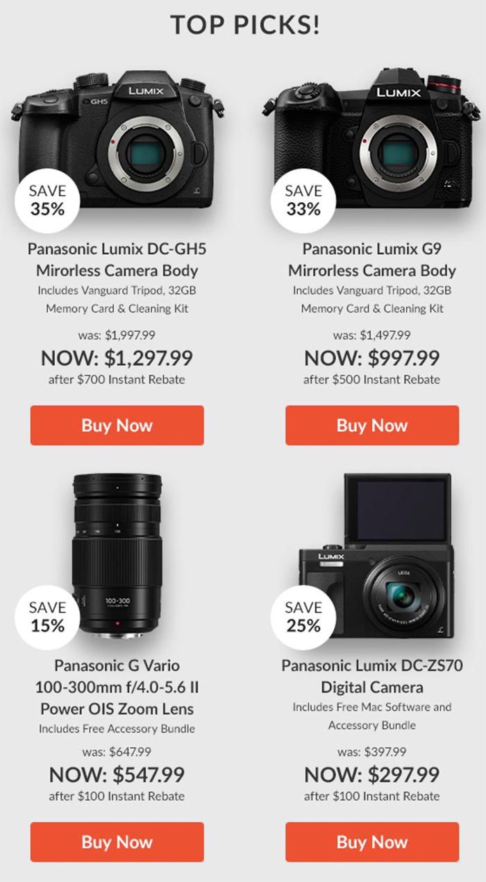 You can now find all Panasonic holiday deals on those pages at Adorama, BHphoto and Amazon.