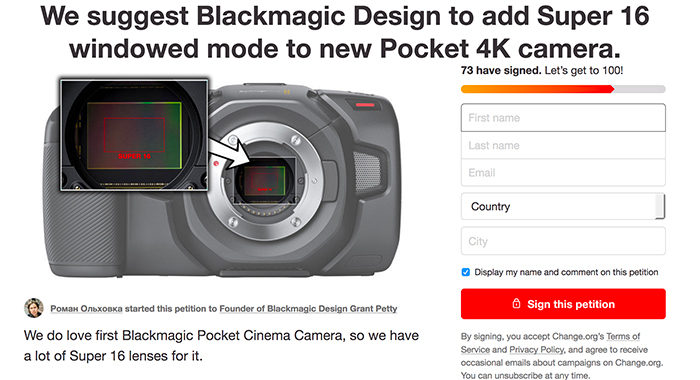 There is a petition on Change.org to add Super 16 windowed mode to new Pocket 4K camera. Sign it if you agree with it!