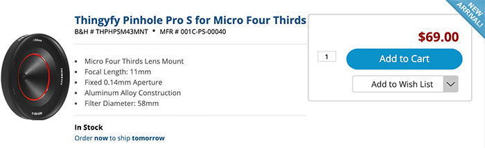 Thingyfy Pinhole Pro for Micro Four Thirds now on sale at BHphoto