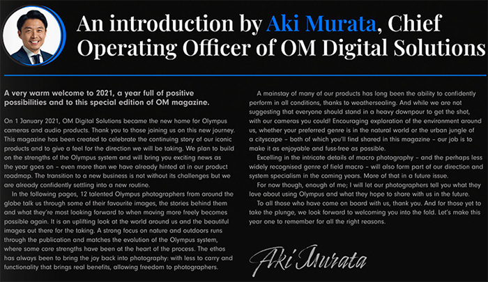 OM Digital presented their new online magazine (Click here). And inside you can find a statement from the operating chief Aki Murata. He also says this: