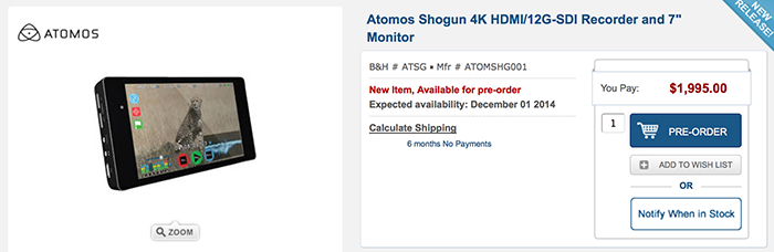 Atomos Shogun 4k recorder for the GH4 will ship on December 1. GH4 price drop reminder!