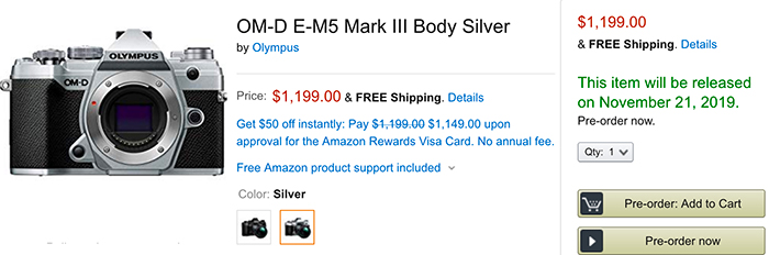 You can now preorder the new Olympus E-M5III at Amazon US too