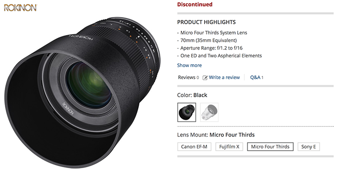 Bad news: Rokinon 35mm f/1.2 for MFT marked as discontinued at BHphoto