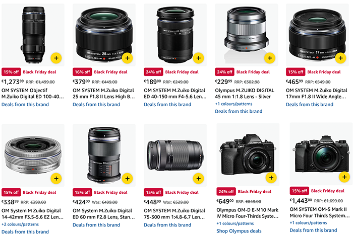 New EUROPEAN Black Friday deals at Amazon Germany, Amazon UK, Amazon France, Amazon Italy, Amazon Spain, Amazon Netherlands, and other Amazon EU countries. Plus on non-Amazon stores at OM EU store, Fotokoch, Fotoerhardt, Calumet and WexUK.