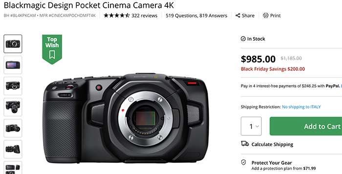- $200 off on the Blackmagic MFT camera sold by BHphoto