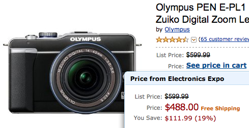 Hot new deal. The Olympus E-PL1 with 14-42mm Lens (Black) is in Stock for $488 at Amazon.