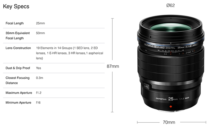 It is the first f/1.2 lens from a new line of lenses. More lenses will be released in 2017. The full presentation page of the lens can be found at GetOlympus (Click here).