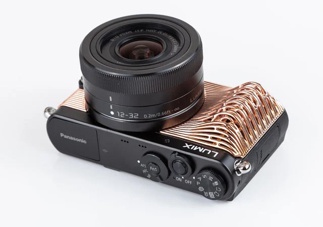 So apparently this design was just shown at Photokina 2014 as a concept of future Panasonic cameras, it was made by German design studio WerterOberfell (WertelOberfell GbR). This grip was planned to be in next gen GM1 (maybe GM5, maybe something newer) interchangable (so you could have different fronts) but it was canceled after the change of management. And the craziest part is that this Lumix is 1 of 3 that were created. One of those was kept by WerterOberfell and two were given to higher management (I guess Panasonic?). It is just mind blowing for me.