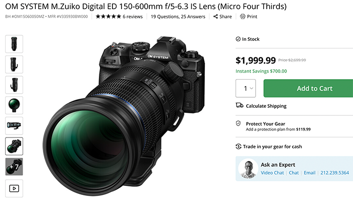 - $700 off on the 150-600mm lens at Amazon, BHphoto, Adorama, Om Digital.