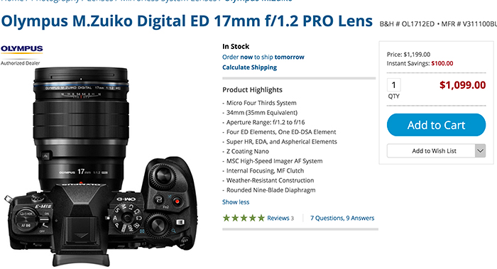 17mm at Amazon, BHphoto, Adorama and GetOlympus.