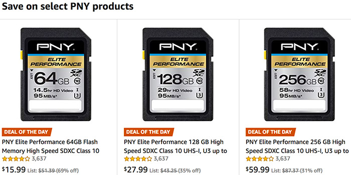 Today’s deal of the day at Amazon runs on PNY cards and storage (Click here).