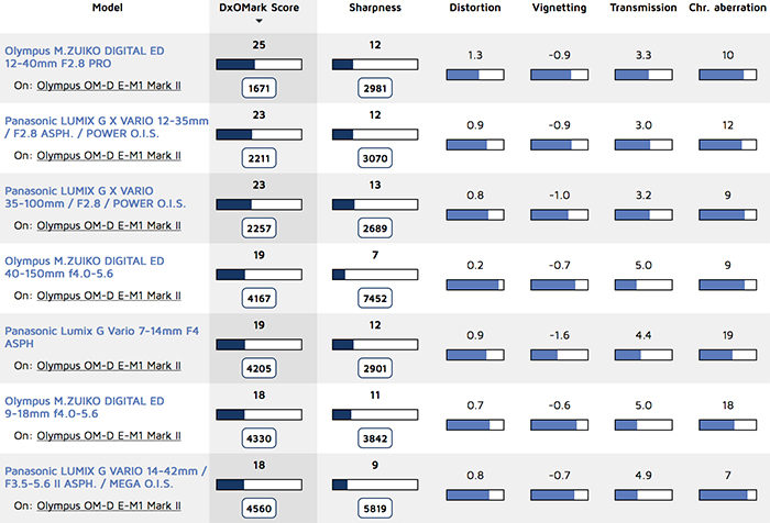 DxO publishes the list of the best primes and zooms for the Olympus E-M1II