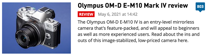 The Olympus OM-D E-M10 Mark IV is a handsome entry-level camera with some helpful aids for new users, but with enough controls to provide room to grow. While its autofocus and burst speeds lag the competition, its stand-out feature is an effective in-body stabilizer, especially handy for low-light stills and handheld video shooting. In all, the E-M10 IV is a fine photographic companion for a variety of users.