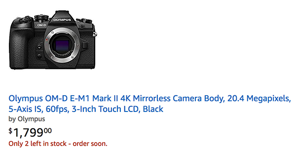 You save $200 on the E-M1II sold on Amazon via Cardinal (Click here).