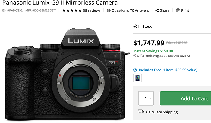 Flash sale! Panasonic G9II with $150 discount at BHphoto/Amazon/Adorama