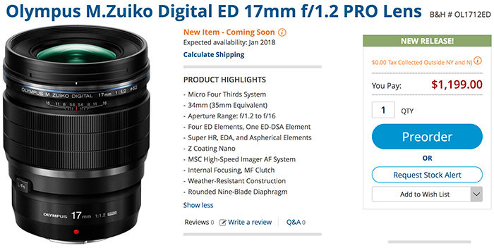 This is the new 17mm f/1.2 PRO lens. And probably the most annoying thing of this lens is that it will ship in January only. But for the rest this promises to be a great lens!