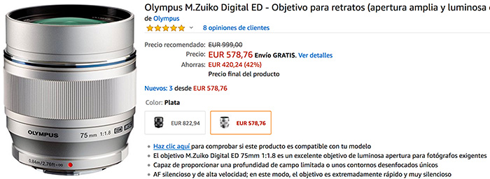You save 200 Euro on this Olympus 75mm f/1.8 MFT lens sold right now directly by Amazon Spain (Click here). All EU citizen can buy from this store!
