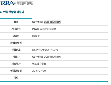 The Korean agency RRA registered a new HLD-9 battery grip. This one is made for the new E-M1II that will be announced on September 19.