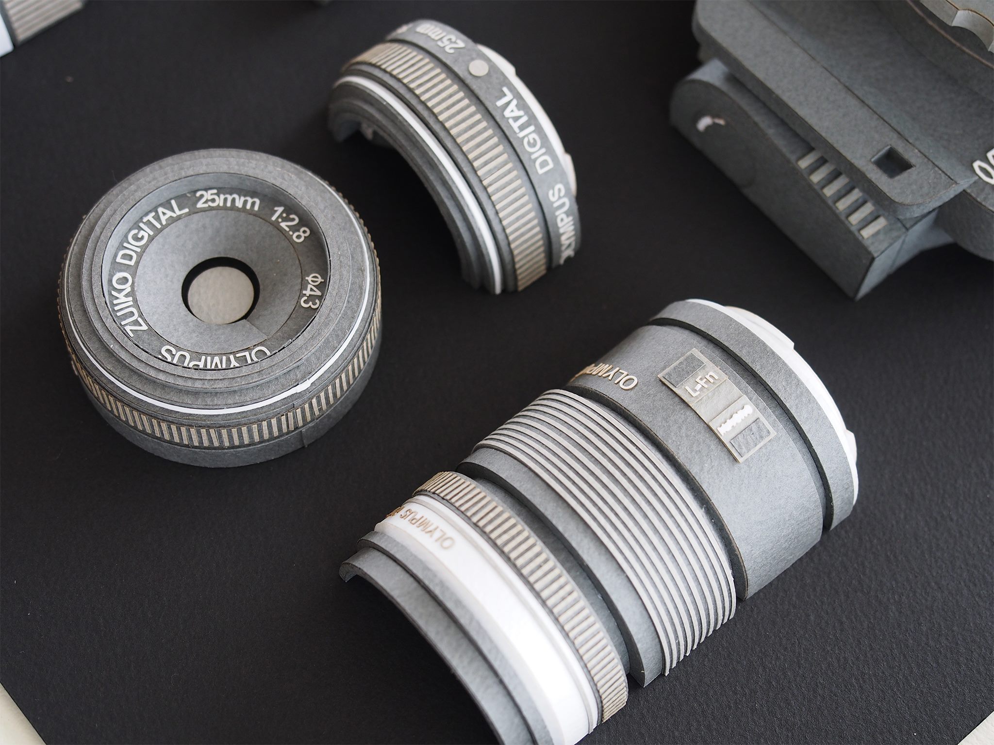 Believe it or not, the OM-D E-M5, lenses, and accessories you see here are all made entirely of paper. Japanese paper artist Kamihasami (which means “Paper-scissors” in Japanese), wanted to see how far his paper-handling skills could go, so he used his spare time over three months to design, cut, and paste together an entire Olympus camera system, complete with battery charger and underwater case. The lenses can actually be attached to the OM-D body. His efforts paid off, and he won an award in the 26th Kamiwaza Grand Prix, which recognizes some of Japan’s greatest works of paper art. Click on the images (taken with his OM-D E-M5, of course) to see the incredible detail. Kamihasami did Olympus engineers proud.