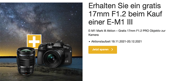 Get a 17mm f/1.2 PRO for free when buzzing the E-M1III at Olympus EU stores