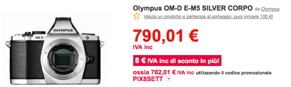It doesn’t happen often that I find super deals in Europe. Those kind of huge price drops I usually find in US stores. This one is really strange. While the normal E-M5 body price in Europe is around 1100 Euro (see Amazon Germany) you can get crazy low prices in one country only….Italy! There is now a 300 Euro price drop on Pixmania Italy (Click here). I checked and there is o such deals on the other Pixmania Europe stores. Another italian store having good prices and shipping to Europe is [shoplink 33660 ebay]Bartoletti eBay (Click here)[/shoplink].