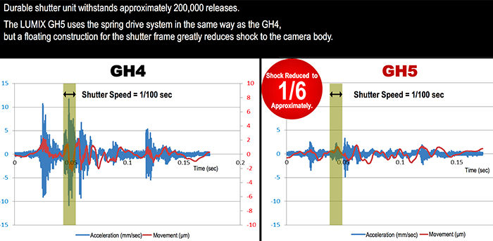 GH5 has a Shock Reduction Down to 1/6 compared to the GH4