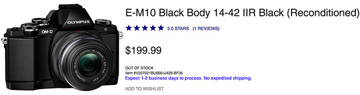 Great deal Reconditioned E-M10 with kit lens for $199 at GetOlympus!