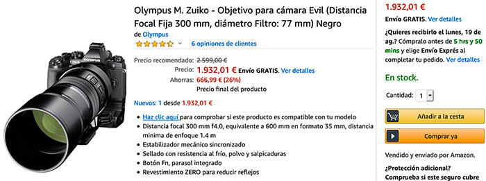 Hot deal at Amazon Spain: 430 Euro off on the excellent Olympus 300mm f/4.0 lens