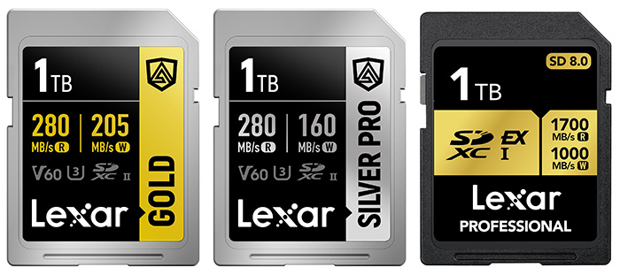 Lexar memory cards include the CFexpress 4.0, ARMOR series, and SD 8.0.