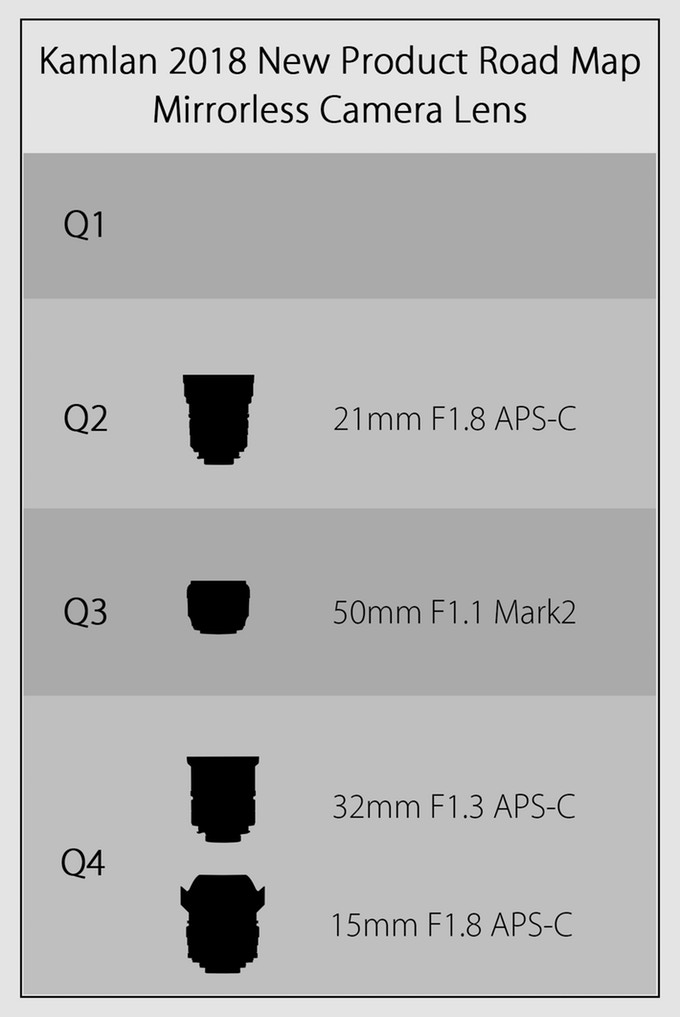 Kamlan launched the new 28mm f/1.4 MFT lens on Kickstarter. And they also teased the future launch of four more MFT lenses (see image below).