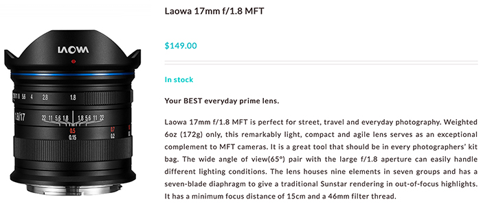 Laowa 17mm f/1.8 MFT lens for $149 only (and new sexy skin)