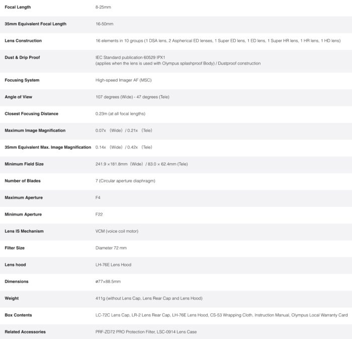 More leaked 8-25mm f/4.0 PRO info and size comparison. Announcement on June 9