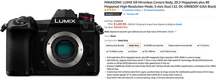 You now get the G9 for $1,498 at BHphoto. Amazon. Adorama. FocusCamera. That’s the best price ever!