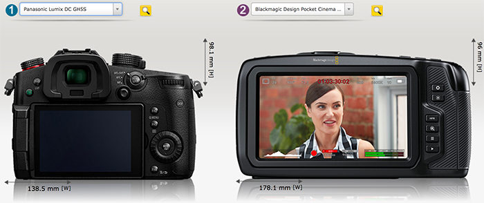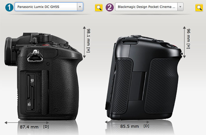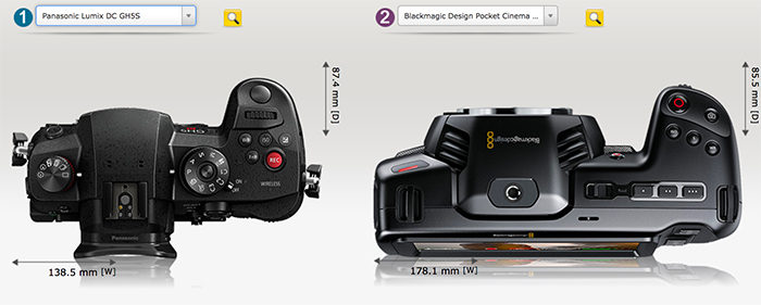 New Blackmagic 4K cinema camera versus Panasonic GH5s size comparison