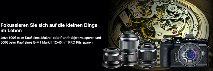 There is a new Cashback action on lenses and on the E-M1II kit at Olympus Germany and Olympus France.