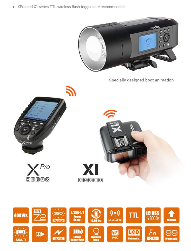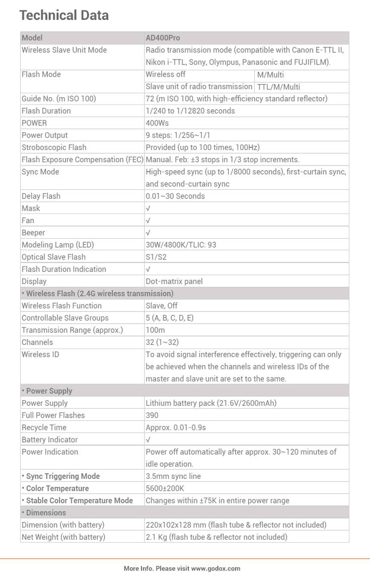 New Godox announces AD400Pro strobe also for Olympus/Panasonic July 10, 2018 news 0 Comments Godox announced the new AD400Pro strobe (listed here at BHphoto and Adorama). Here are are the images and specs (click to enlarge):