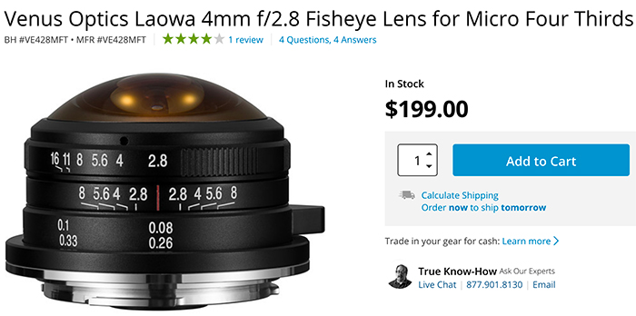 Venus Optics announced that the new 4mm MFT lens is now shipping out. It’s in Stock for $199 at BHphoto and directly at Venuslens.net .