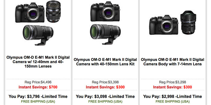 New list of Panasonic and Olympus cameras and lens savings at BHphoto (new E-M1II savings)