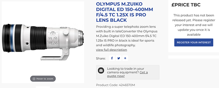 New Olympus 150-400mm PRO lens now listed Park Cameras UK. Release soon?