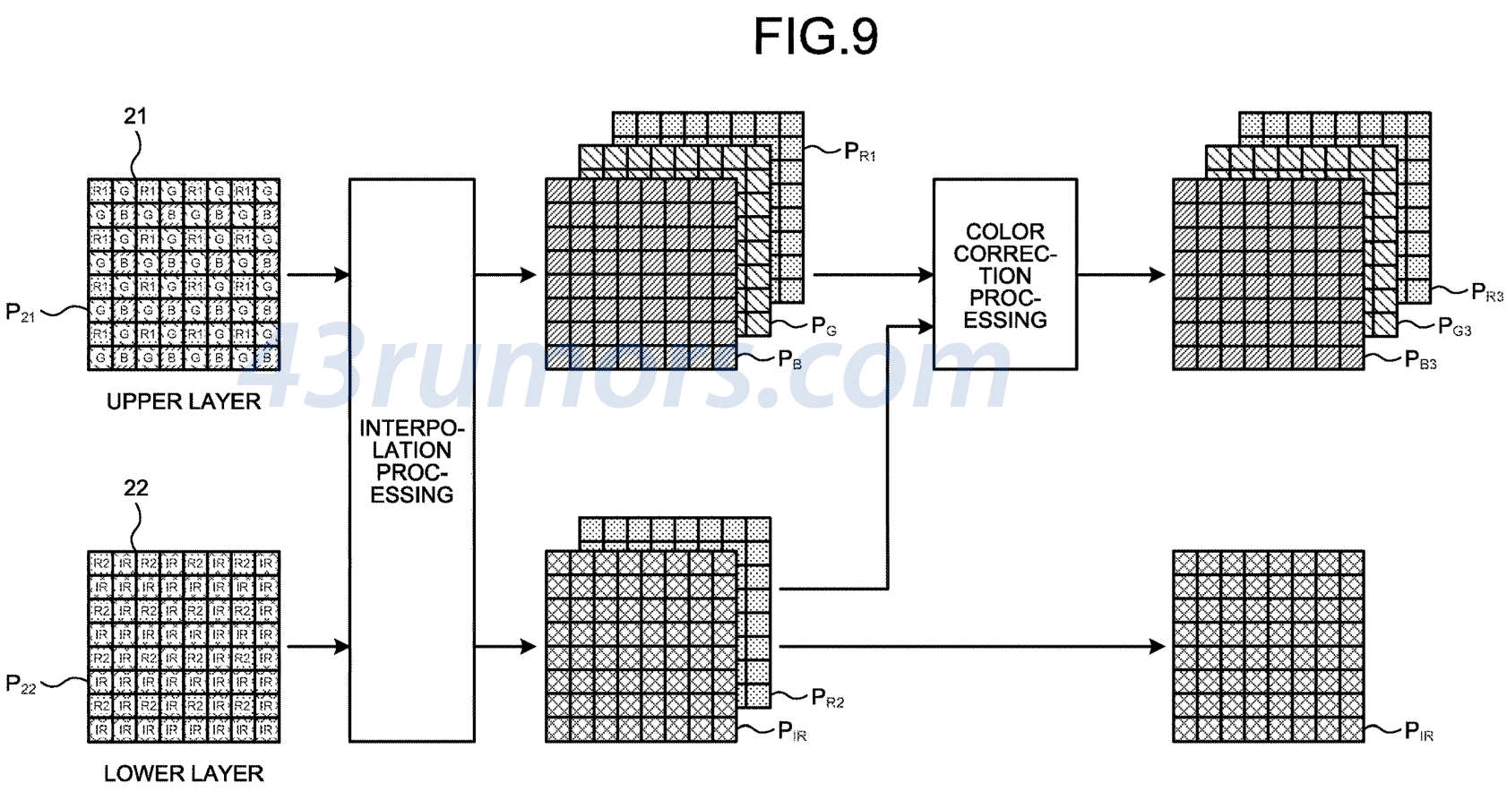 …Olympus subtracts infrared light information included in the visible light image captured by an upper-layer image sensor using infrared light information included in the infrared light image captured by a lower-layer image sensor so as to prevent the deterioration of the color reproducibility of the visible light image.