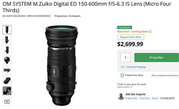 150-600mm at Amazon US&CA&EU, BHphoto, Adorama, Om Digital,