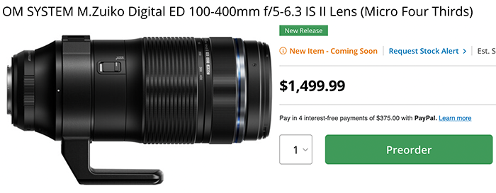 New OM M.Zuiko 100‑400mm II lens tests by Micro Four Nerds, Art Lefo and Emilie Talpin Andreapazzo 11 months ago New 100-400mm II lens at BHphoto, Adorama. German: