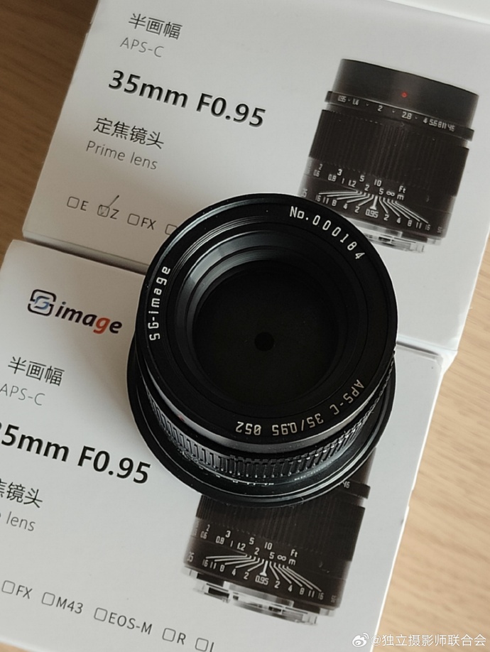 This is the new SG-image 35mm f/0.95 lens (for APS-C and MFT cameras). It’s from a new Chinese manufacturer and here are the specs: