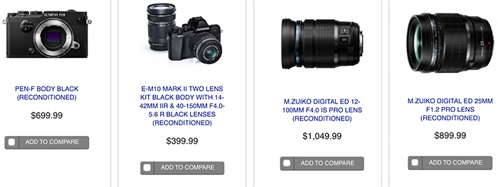 66 reconditioned items are now for sale on the GetOlympus page. There is also the nice Black PEN-F for $699 only.