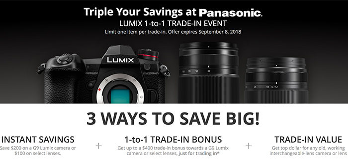 New up to $400 trade.in bonus to buy the Panasonic G9 and lenses August 16, 2018 deals 0 Comments Check out the new trade-in offer at BHphoto.