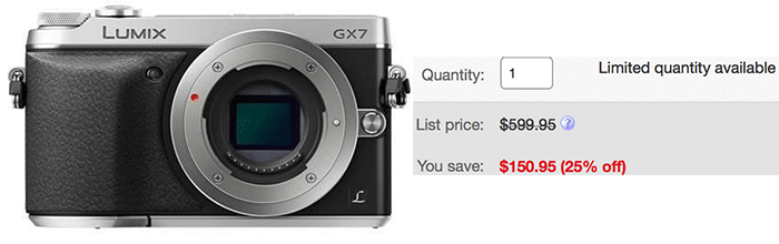The GX7 is selling for $449 only by [shoplink 52178 ebay]Adorama on eBay (Click here)[/shoplink]. That’s a new $90 off on the already discounted camera.