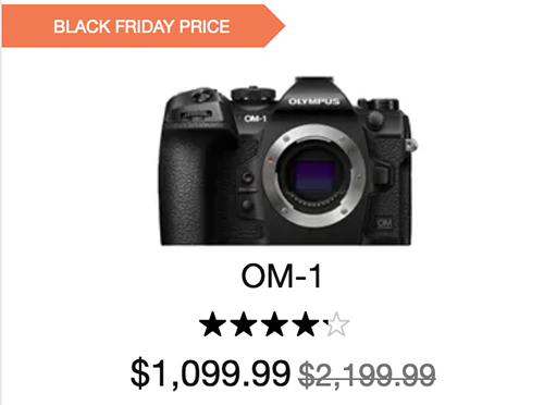 - OM-1 body for $1,099 only at OM Digital store.